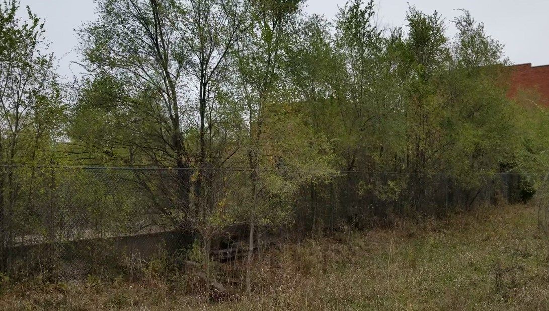 Previously, part of a chain-link fence at the southwest corner of the property had been cut away….and has been used as an entry point. The area is surrounded by overgrown trees and brush.